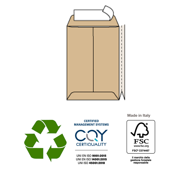 Busta sacco MULTI STRIP LARGE - avana - carta riciclata FSC - soffietti laterali - strip adesivo -