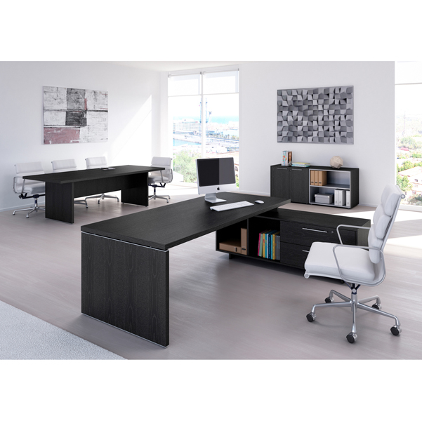 Scrivania Manager Prestige - 210x90x74 cm - con mobile servizio reversibile - nero venato - Artexpor