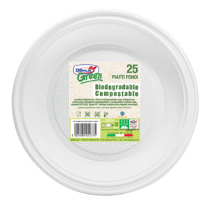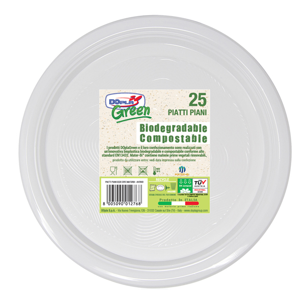 Piatti piani biodegradabili - Mater-Bi - diametro 220 mm - avorio - Dopla - conf. 25 pezzi
