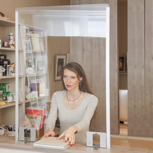 Schermo protettivo con feritoia - da banco - acrilico grigio alluminio - 76x66 cm - Metalplus